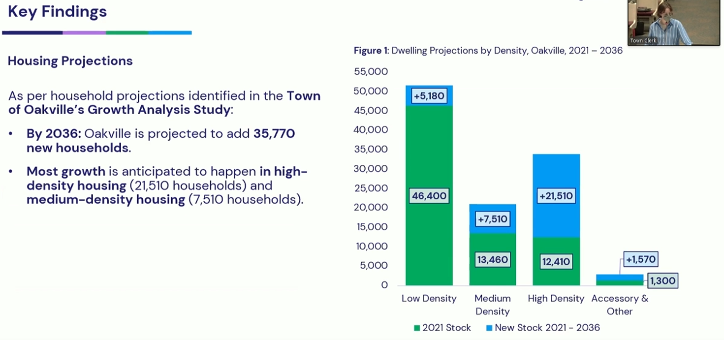 Oakville is projected to add 92,000 residents and 35,760 new households by 2036, with another 68,110 households expected by 2051. If current construction trends continue, the town will see a major shift in its housing mix, with high- and medium-density units growing at a faster rate than low-density units.