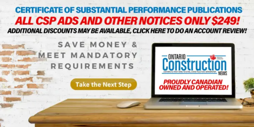 OCN is a Canadian Owned and Operated daily digital construction newspaper and website compliant with Construction Act regulations, providing essential news, tender information, and certificate publication services to the province’s architecture, engineering, and construction community. OCN is the only provider to offer free universal search for all Form 6 (Annual Release) and Form 9 (CSP )and other notice requirements at certificatesubstantialpeformance.com.